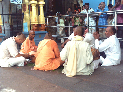 Krsna katha distributed by Sripad Bhakti Prapanna Tirtha Maharaj in Balaji Temple in the village of Sripad Venkata Krsna Prabhu in Madaram, Khammam