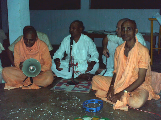 On 11th May 2009, in the early morning, the devotees started for Madaram, a village near Khammam. Sripad Venkata Krsna Prabhu (received Hari Nam during Gaura Purnima 2009 from Srila Bhakti Sundar Govinda Dev-Goswami Maharaj). Sripad Venkata Krsna Prabhu stays in Madaram and has organized a preaching program in the village. Also devotees from Hyderabad (Sripad Radhikapati Prabhu and his family) joined the sadhu sanga in the holy association of Sripad Bhakti Prapanna Tirtha Maharaj in the house of Sripad Venkata Krsna Prabhu. On the evening of 11th May 2009, there was Nagar sankirtan in Madaram village (download mp3). Sripad Bhakti Prapanna Tirtha Maharaj, Sripad Jagadananda Prabhu, Sripad Radhikapati Prabhu, Sushen Krsna Das blessed the village residents with nectarine Bhagavat katha in a Balajai temple in Madaram village. You can download the nectar here.