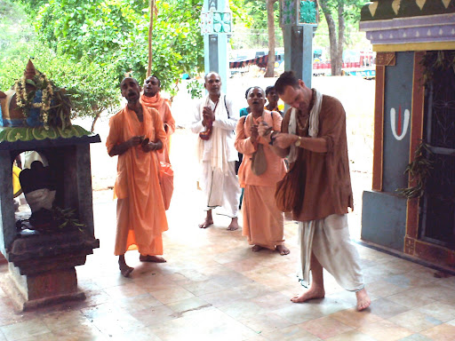 Sripad Murli Purushottama Prabhu guided the devotees one by one on a tour of the Narashima temples in Ahobalam, while explaining the glories of each temple. Some of the audio recordings of the same can be found here. Devotees went to Vedari Hills to take darsan of Ahobalm with Sripad Murli Purushottama Prabhu on 9th May 2009. In the evening on 9th May 2009 devotees caught the train to return to